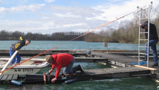 Sturm Eberhard hat einen Ausleger des Stegs absaufen lassen. Gemeinsam heben wir ihn wieder auf seine Auftriebskörper. Vielen Dank an alle Helfer! Der Steg ist nun wieder startklar für die kommende Segelsaison.