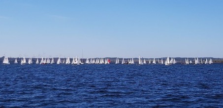 Regattafeld bei der IDM/IDJM der 420er in Wismar 2018