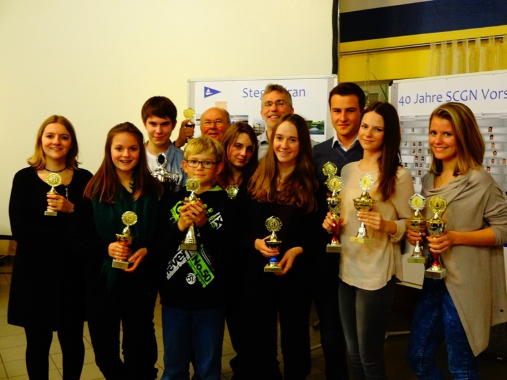 Nachdem unser Jugendwart Gerald Oberschmidt die Highlights 2015 der Segler-Jugend präsentierte war die Spannung schließlich groß, wer denn nun Clubmeister des SCGN wird. Unser Sportwart Jürgen Wiesel fing erst mal mit den ungeduldigen Optis an. Alle Opti-TeilnehmerInnen bekamen eine tolle Urkunde überreicht und die ersten drei Plätze wurden mit einem Pokal honoriert. 3. Platz – Lara Hambsch, 2. Platz Sophia Kistner und Opti-Flottenmeister 2015 - Luca Wolf. Bei den 420er-Teams wurde nochmals eine Extrawertung gemacht und die ersten drei Ränge auch mit Pokalen geehrt. 3. Platz – Leonie Kistner / Rebecca Weser, 2. Platz – Lucas Kappert / Hannah Fischer und 420er-Flottenmeister 2015 - Kristin Hambsch / Maike Schlindwein. Ganz zum Schluss wurden dann noch die Großen in einer Gesamtwertung bekannt gegeben. Dabei merkten unsere alten Hasen, dass so langsam die jungen Wilden das Feld übernehmen. 3. Platz – Gerhard Sehnke / Bernd Sehnke , 2. Platz – Kristin Hambsch / Maike Schlindwein und Clubmeister 2015 wurde das Team Gerhard Schlindwein / Benjamin Schlindwein. Wir gratulieren Allen zu diesen tollen Erfolgen und freuen uns schon auf die neue Regattasaison, wenn die Karten wieder neu gemischt werden. Wir wünschen an dieser Stelle allen Mitgliedern, Freunden und Gönnern eine schöne, stressfreie Adventszeit.