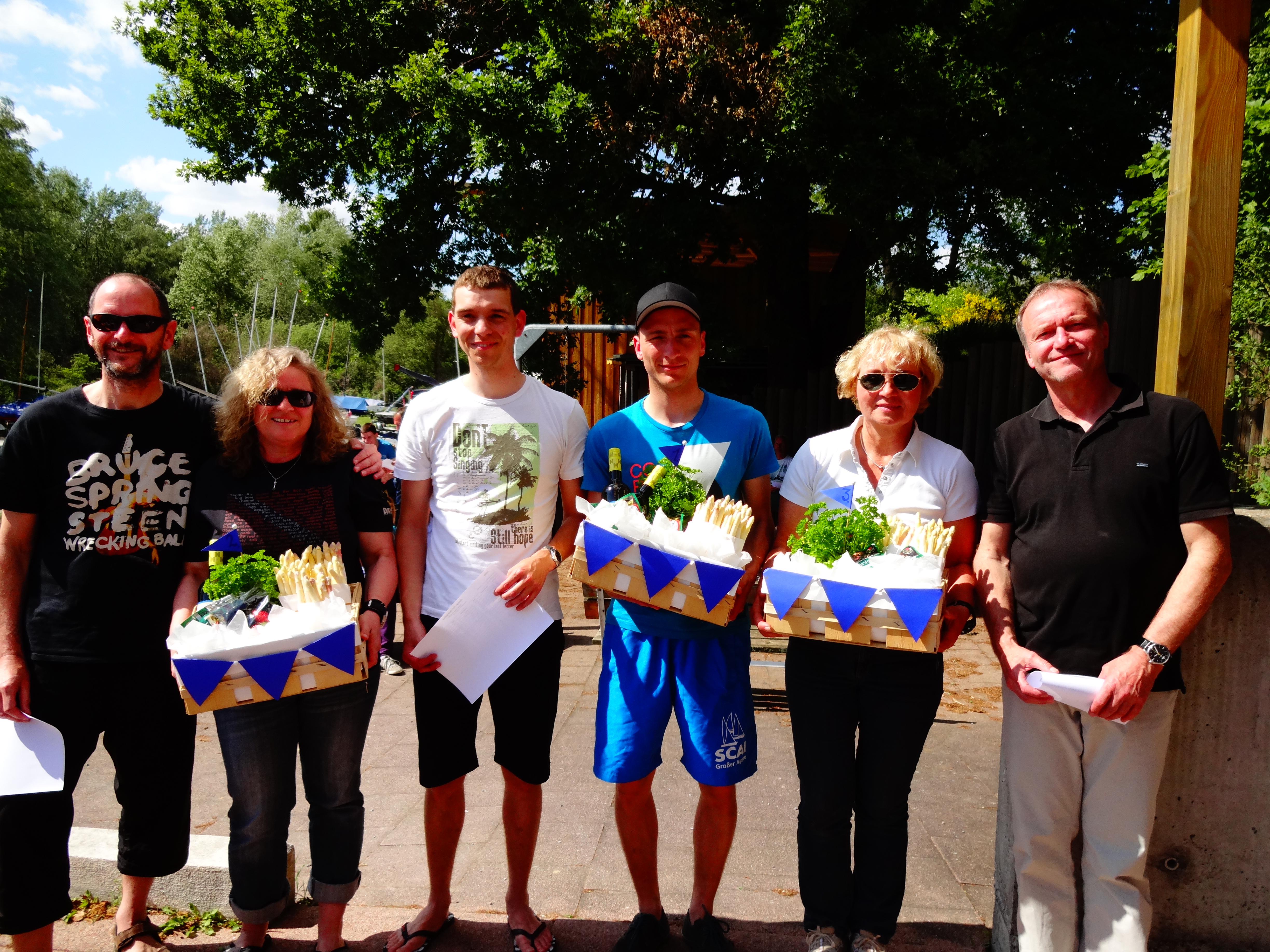 Bereits am folgenden Wochenende fand vom 09. – 10. Mai die 420er/Korsarregatta beim SCGN statt. Auch hier tummelten sich auf dem Gelände insgesamt 34 Mannschaften (420er + Korsar). Viele davon folgen jedes Jahr der Einladung des SCGN, denn auch sie wissen dass es bei uns ein Rundum-Wohlfühl-Programm gibt. Samstags kam auch hier ein Trackingsystem von der ?Dualen Hochschule Baden-Württemberg Karlsruhezum Einsatz. Die Studenten der DH haben mit ihrem Prof seit Monaten daran getüftelt, um es bei uns in den Testlauf zu schicken. Mit drei 1. Plätzen gewannen überlegen die Gebrüder Winkel (Korsar) den Spargelcup beim SCGN. Bei den 420er-Teams gewann Moritz Heger mit seinem Vorschoter Christof Ade. Die SCGN SeglerInnen konnten sich an diesem Wochenende auch wertvolle Punkte für die Rangliste sichern. Bis zum Saisonende im Oktober wird sich hier bestimmt noch einiges tun und der Ein oder Andere vom SCGN noch einige Plätze gut machen.
