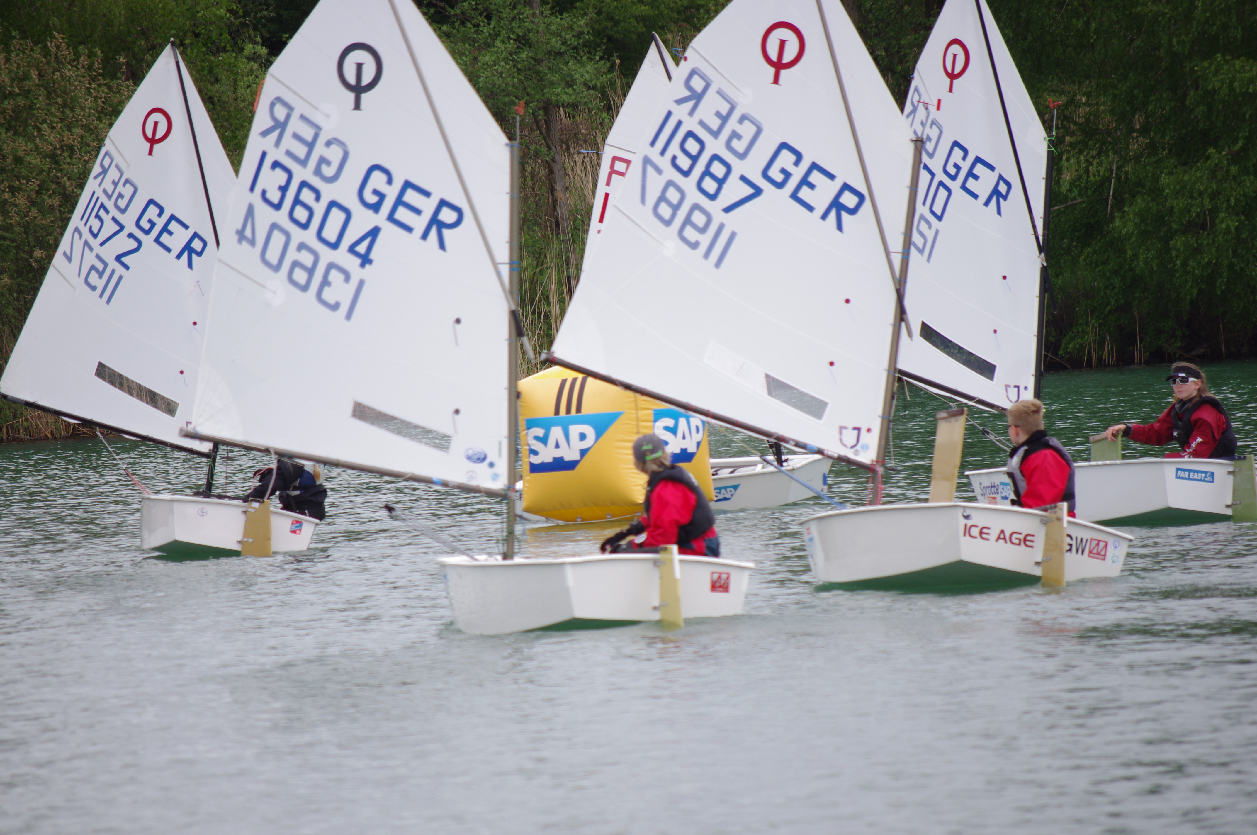 Vom 01. – 03. Mai war das SCGN-Gelände in der Hand von aktiven Opti A + B SeglerInnen aus BW und weiter. Der SCGN hatte zum großen SAP Opti-Cup geladen und insgesamt 41 Regattateilnehmer sind dieser Einladung gefolgt. Zusammen mit der Landcrew (Eltern und Geschwister) und der Crew vom ausrichtenden Verein mussten über 120 Personen unter einen Hut gebracht werden. Für die an Land gebliebenen Zuschauer konnte mittels Tracking (jedes Boot bekam vorm Start einen SAP-Tracker direkt mit) auf einer großen Leinwand das Regattageschehen live an Land geholt werden. Das war eine geniale Sache und an dieser Stelle möchten wir uns nochmals bei unserem diesjährigen Sponsor SAP für die Unterstützung bedanken. Alle Teilnehmer konnten sich bei der Siegerehrung am Sonntag über einT-Shirt mit tollem Print und einer wasserdichten Handytasche freuen. Kulinarisch wurden alle Teilnehmer und Gäste über die Tage rund um die Uhr verwöhnt und waren sichtlich begeistert über die Gastfreundschaft vom SCGN.
