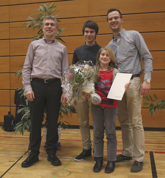 Hier strahlen 4 um die Wette: v.l. 1. Vorstand Gerhard Schlindwein, Jugendtrainer Benjamin Schlindwein, Lisa Renkes und Jugendtrainer/Jugendwart Max Moldovan