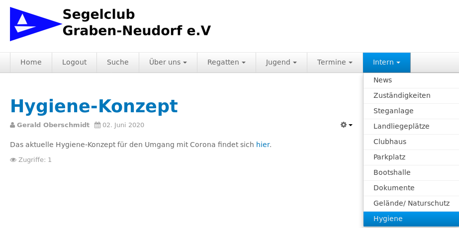 Das jeweils aktuelle Hygienekonzept findet man im internen Bereich wie hier gezeigt. Dazu muss man sich erst einloggen!